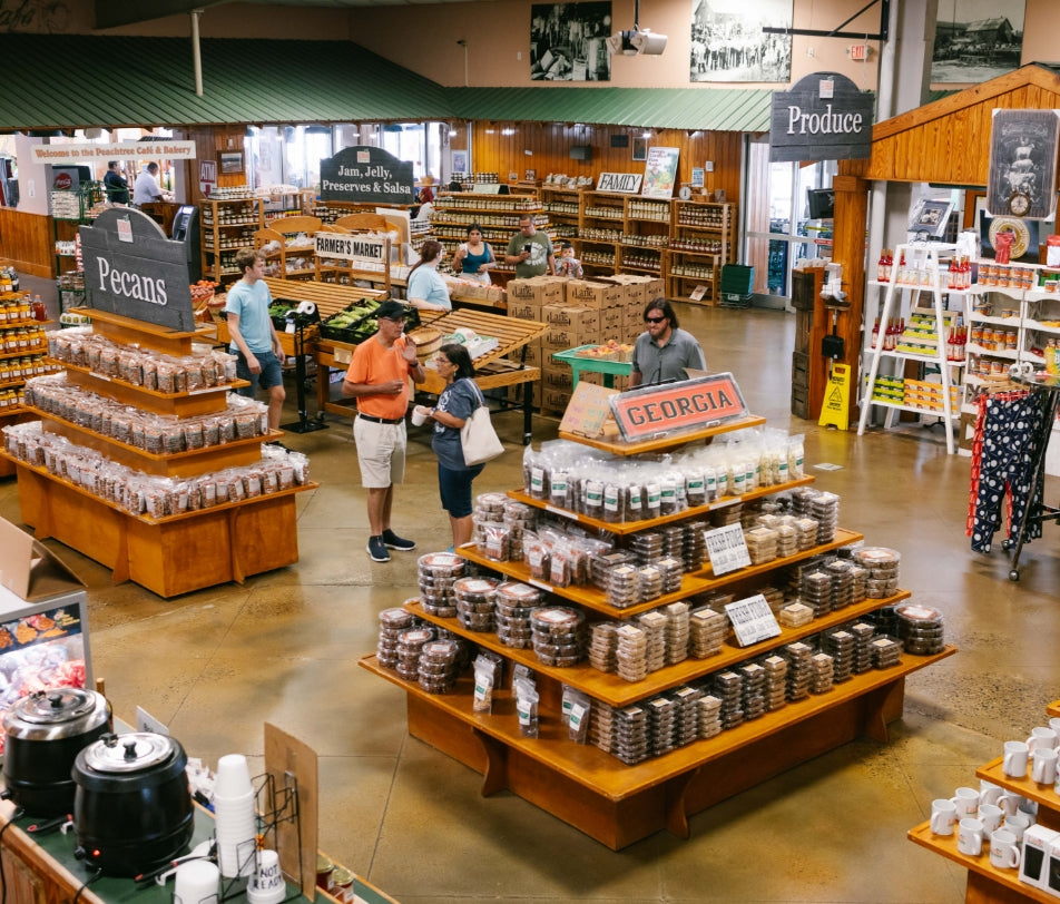 Get off I-75 and have some real family fun, just five minutes away. Enjoy homemade peach ice cream and grab a rocking chair on the porch while the kids play on a farm-themed playground with real tractors. Stroll through our huge indoor roadside market filled with our farm fresh peaches, pecans, and strawberries when in season, as well as other fresh seasonal produce, gourmet treats, local wines and craft beers. Enjoy breakfast or lunch at the Peachtree Café or take a seasonal field trip to the Farm. Whatever the season, there’s always a reason to visit.